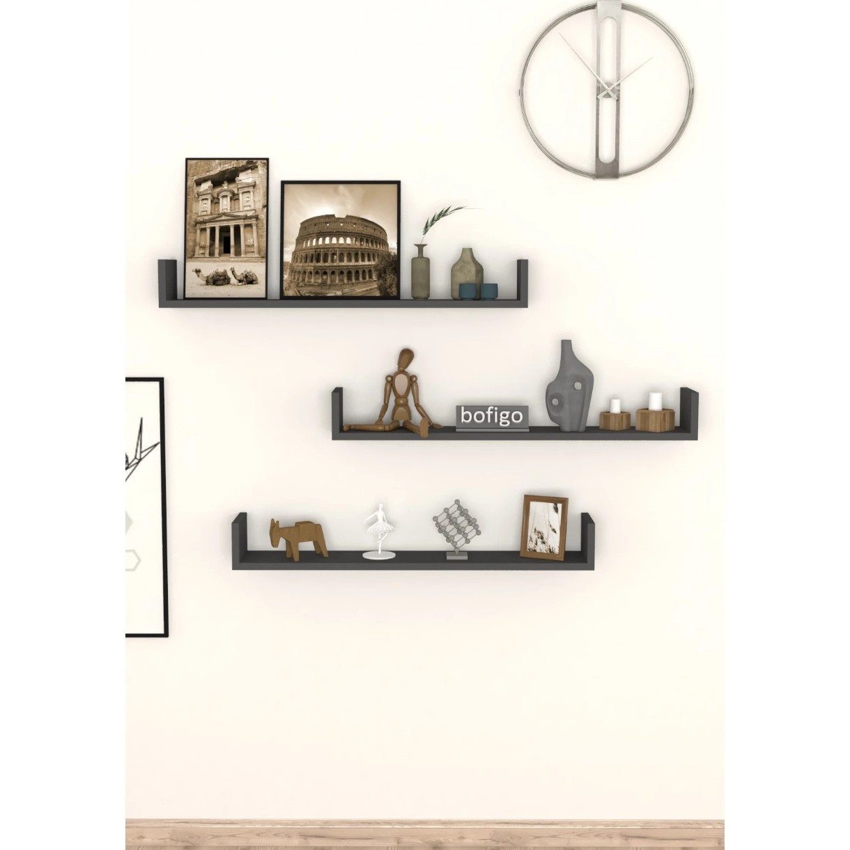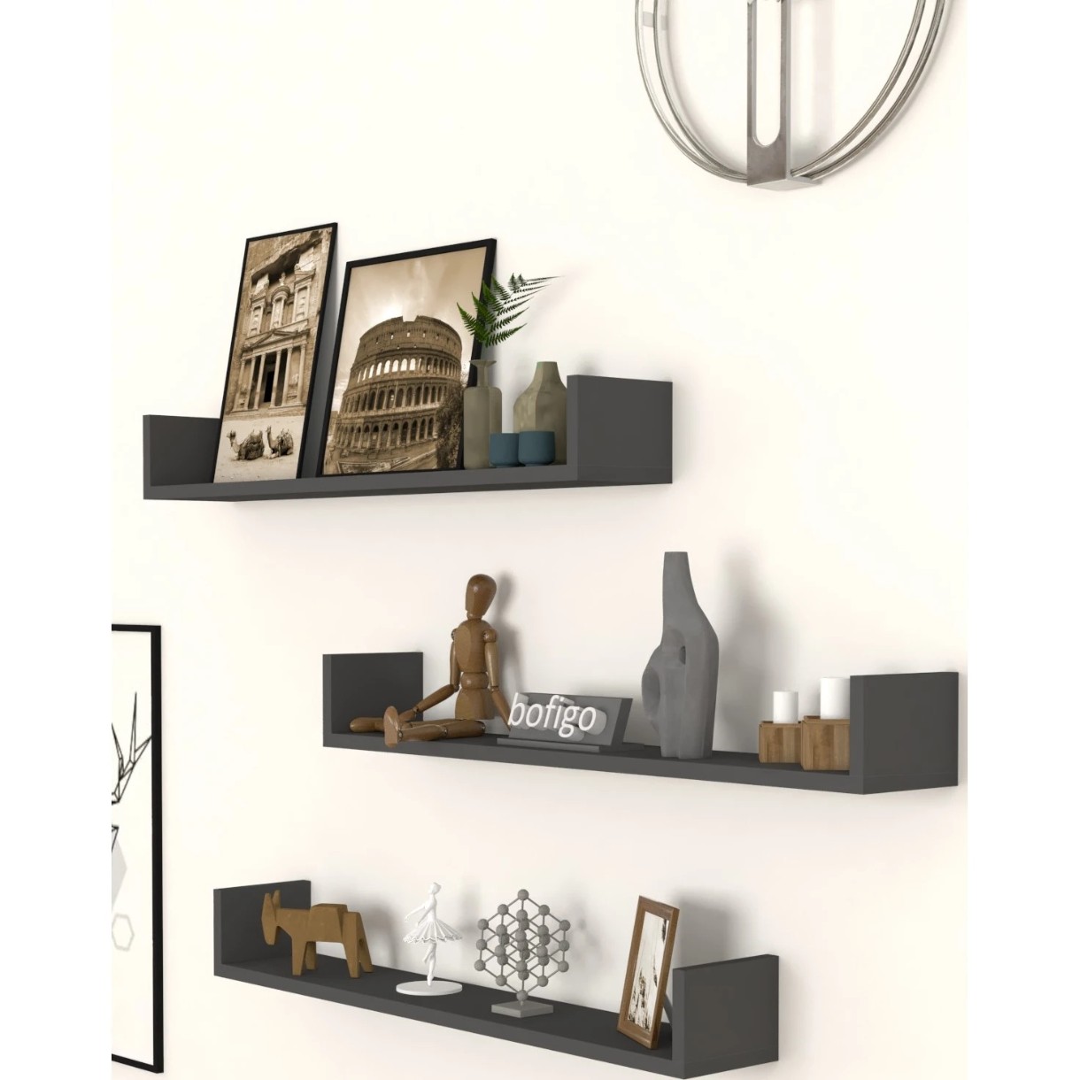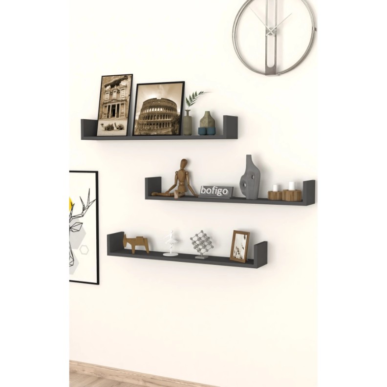Набор из 3 навесных полок — это практичное и современное решение для организации и декора пространства в гостиной, спальне, офисе или кухне. Конструкция типа «парящие полки» создаёт лёгкий и минималистичный вид, экономя пространство и дополняя интерьер.