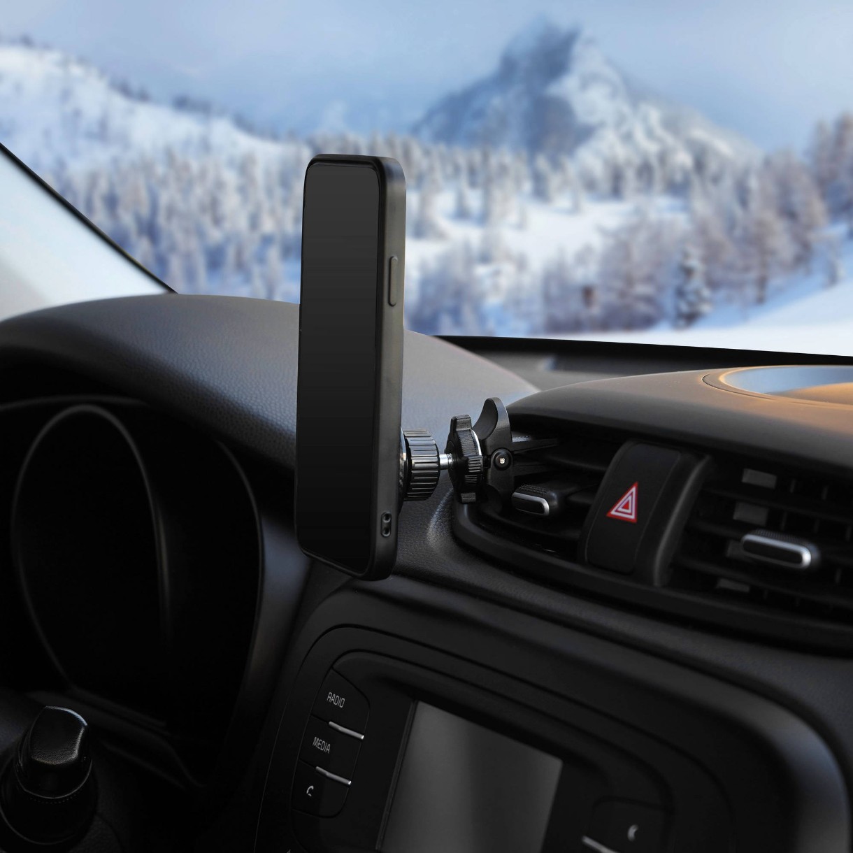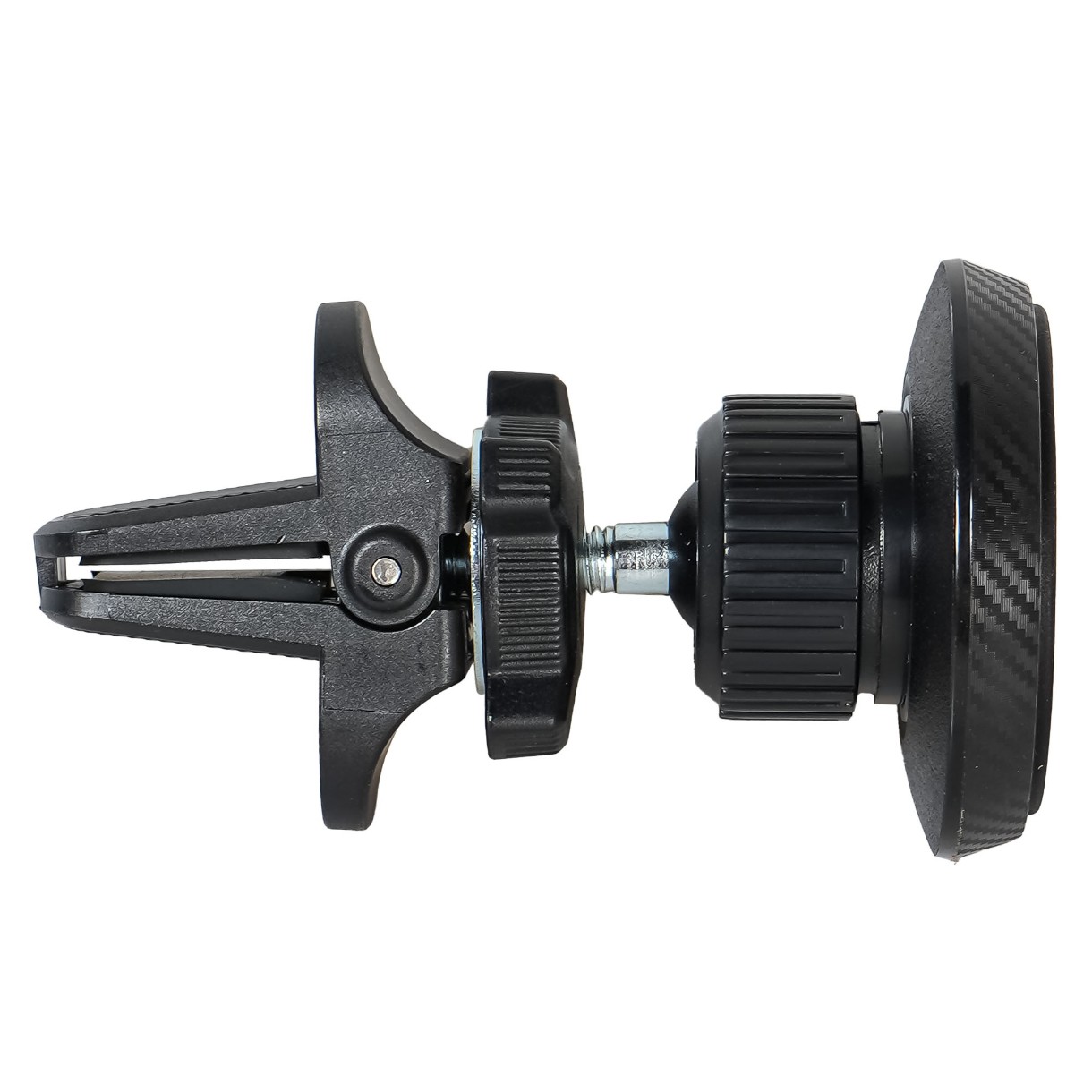 Держатель крепится на решётку дефлектора на прищепку и надёжно затягивается гайкой. В комплекте идёт металлическая пластина которую необходимо прикрепить к задней крышке телефона. Держатель имеет возможность регулировки положения в широком диапазоне. Мощные магниты и резиновая накладка надёжно фиксируют телефон.