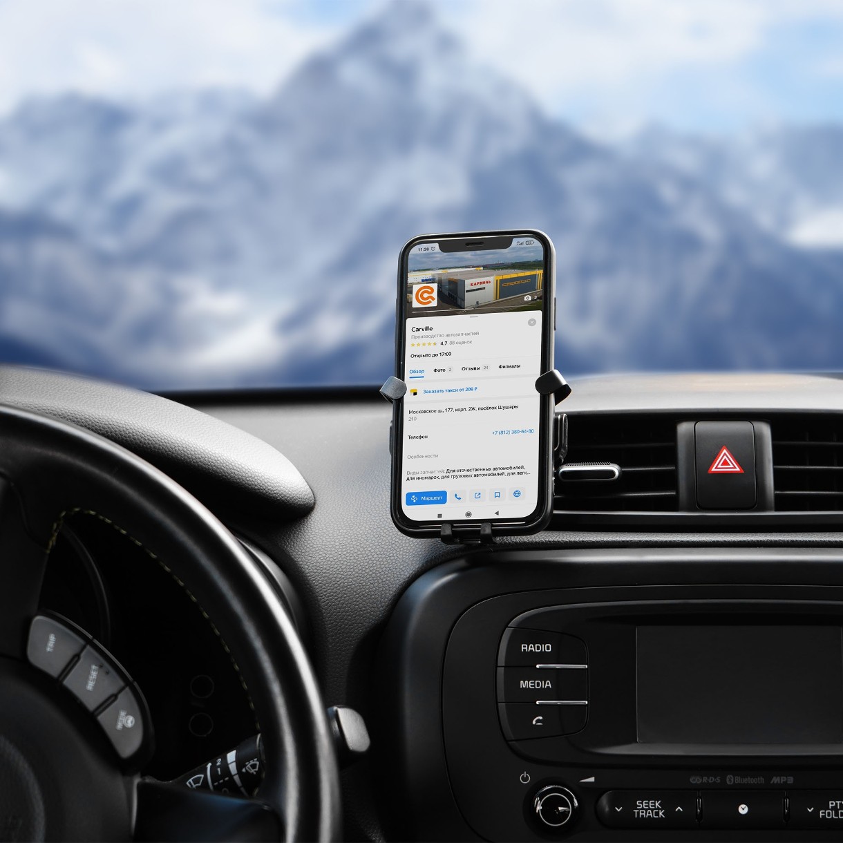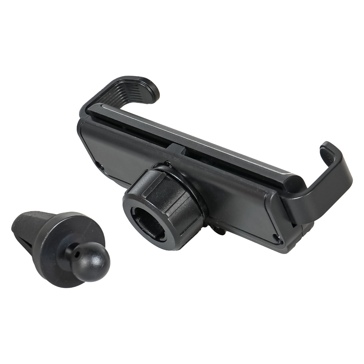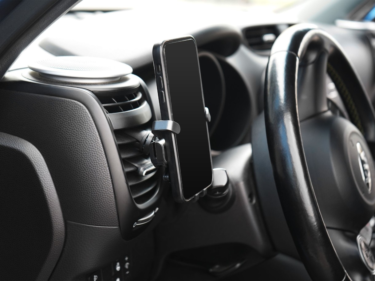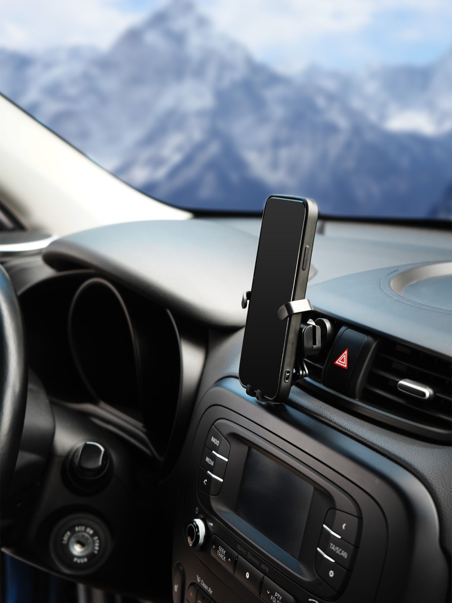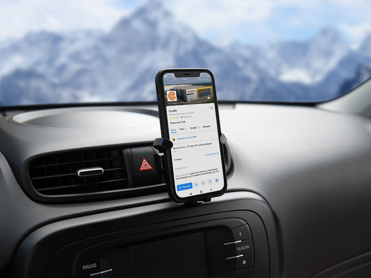 Держатель крепится на решетку дефлектора. Смартфон фиксируется в данном держателе за счет собственного веса. Держатель выделяется компактным размером в сложенном состоянии. Смартфон вставляется в держатель одним движением.