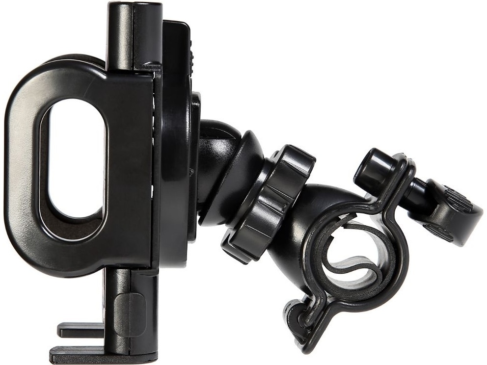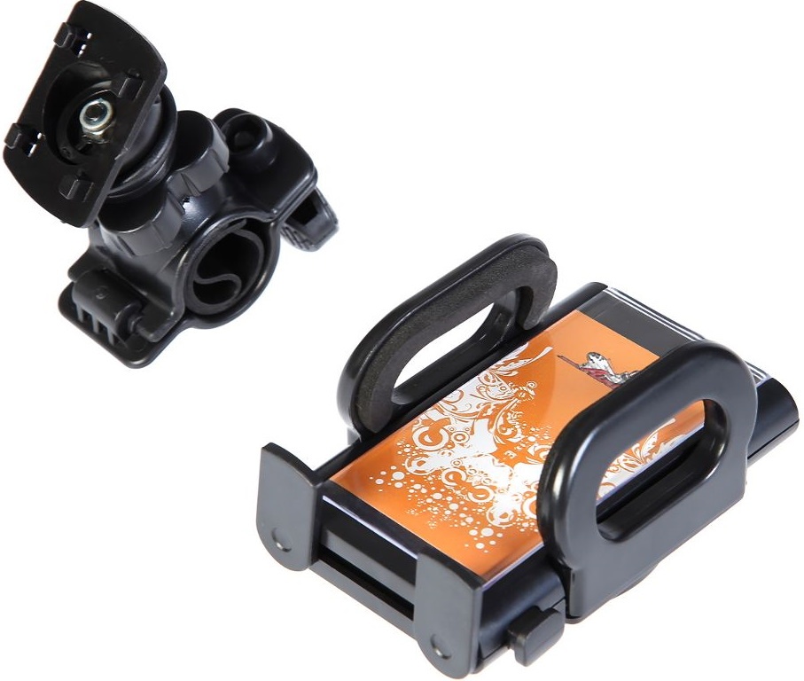 Держатель крепится на руль велосипеда/мотоцикла. Имеет несколько регулировок наклона. Резиновые накладки на прижимах надёжно удерживают устройство от выскальзывания.