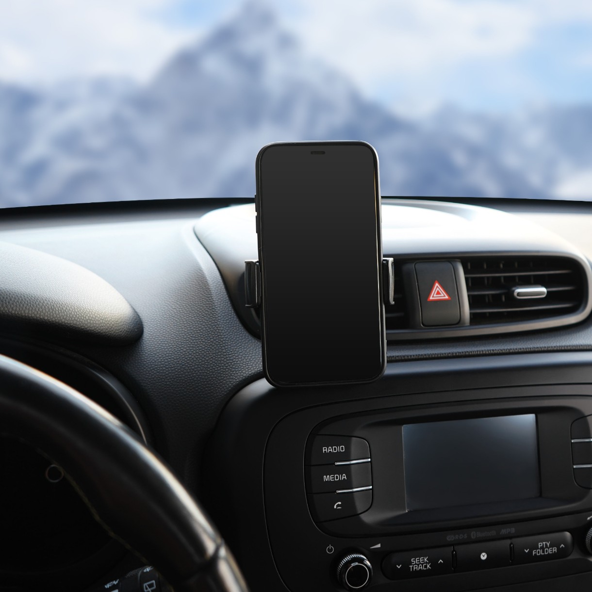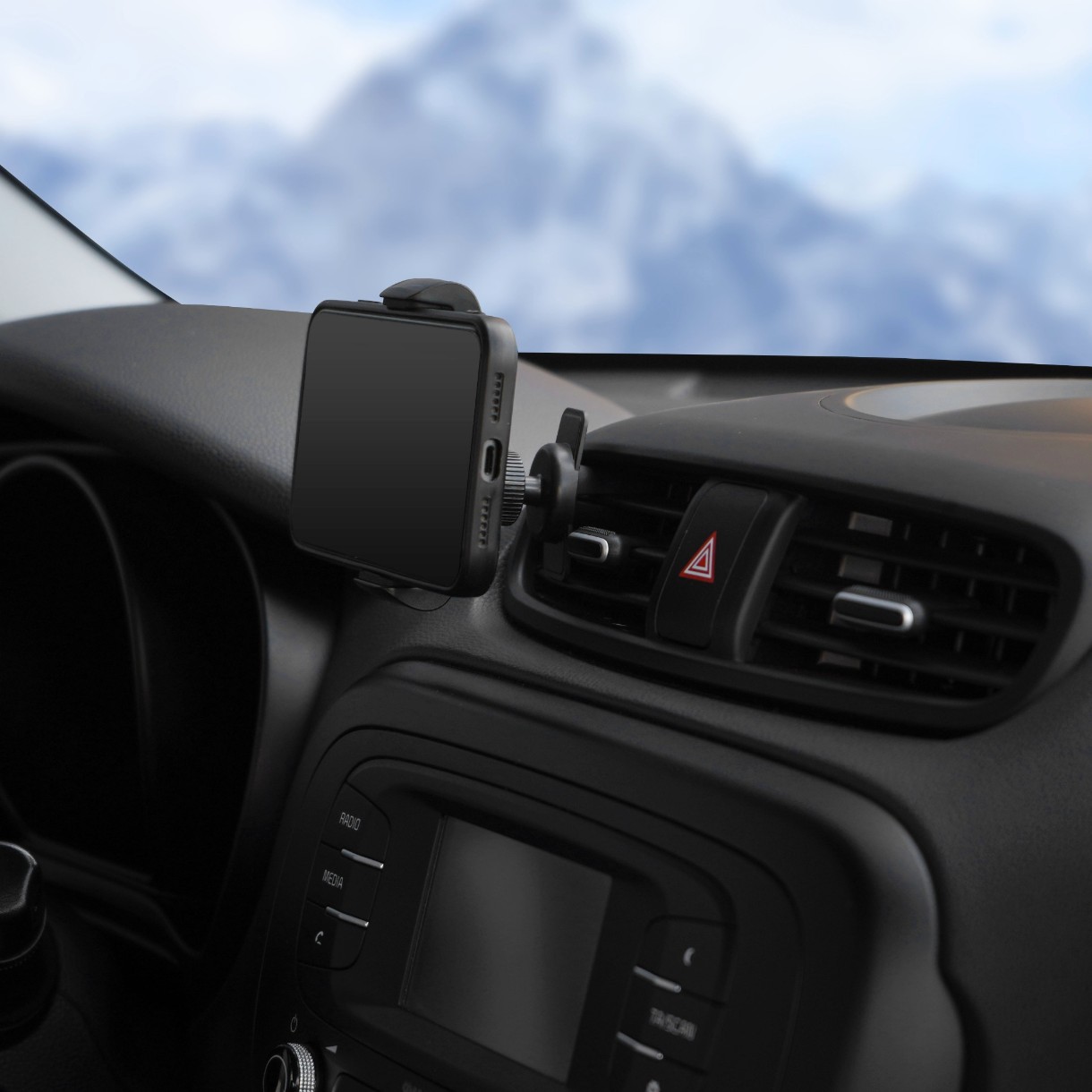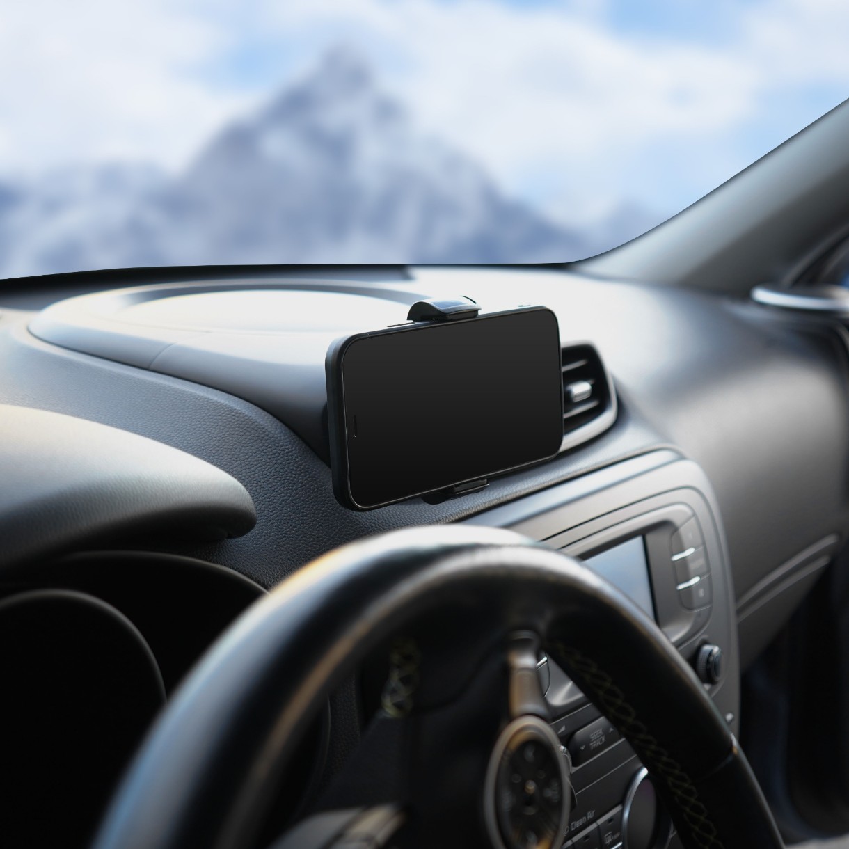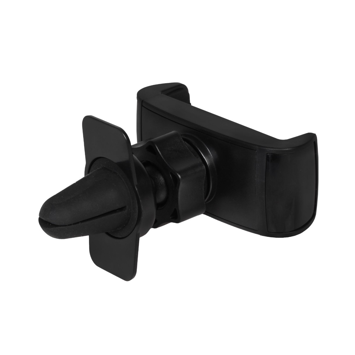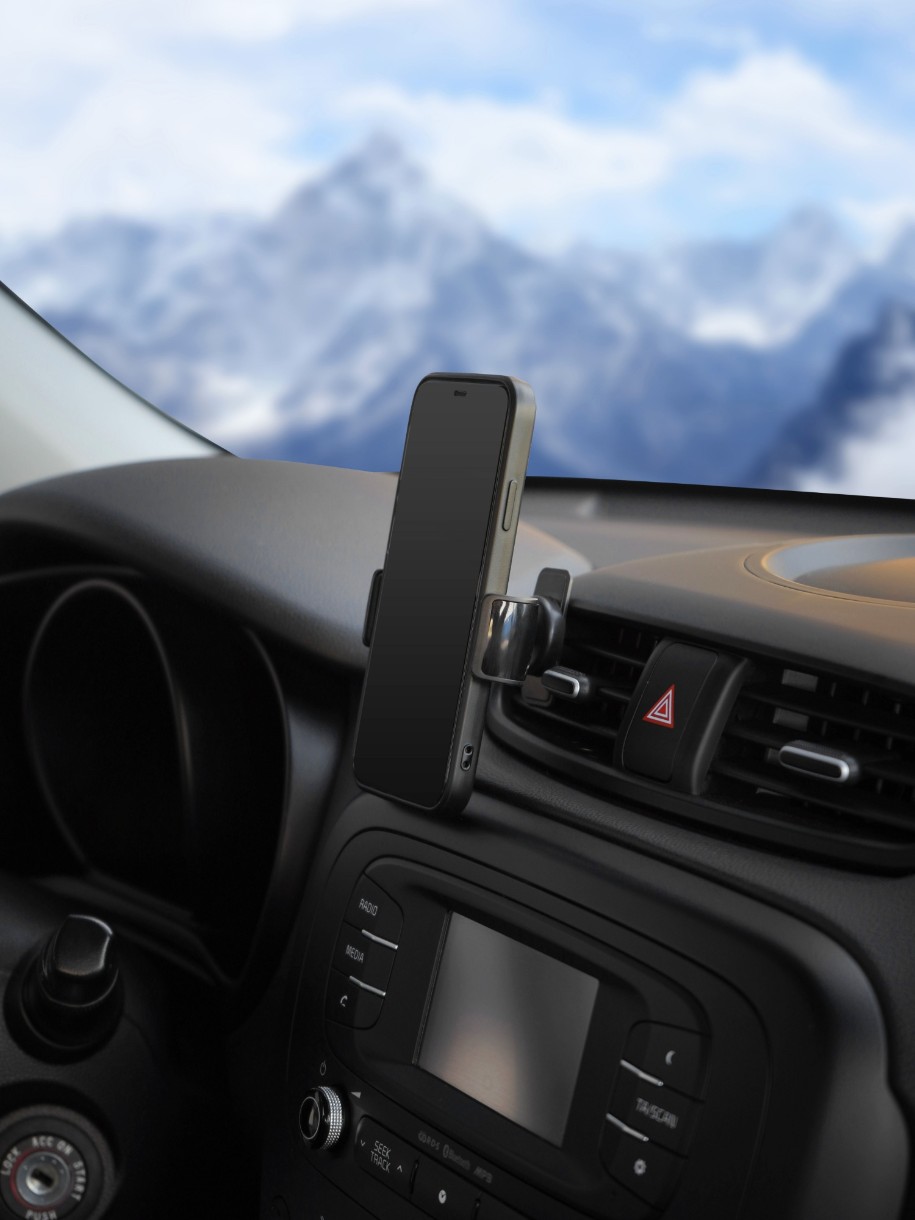 Держатель крепится на решётку дефлектора. Захваты имеют обрезиненные края для надёжного удержания телефона. Благодаря использованию шарнира в конструкции, держатель имеет возможность регулировки по повороту и наклону.