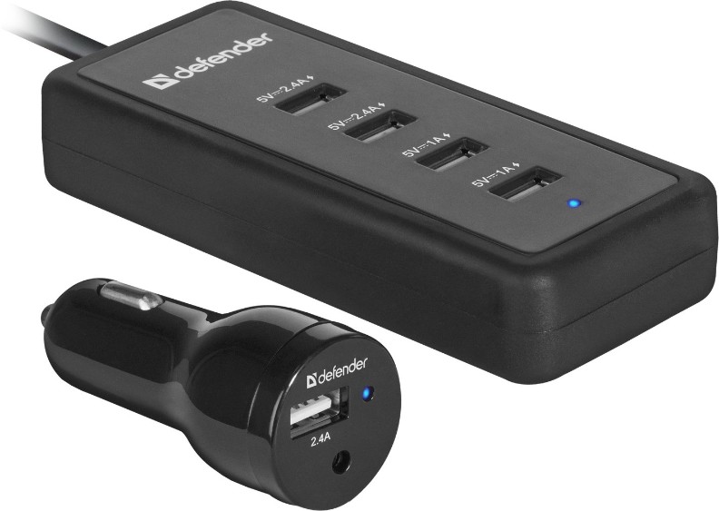 При необходимости к адаптеру можно подключить удлинитель длиной 1,4 м, позволяющий подключить устройства на заднем сидении, дающий 4 дополнительных порта.