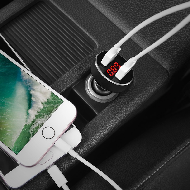 Z26 Высококачественное автомобильное зарядное устройство с двумя USB-портами и цифровым дисплеем.