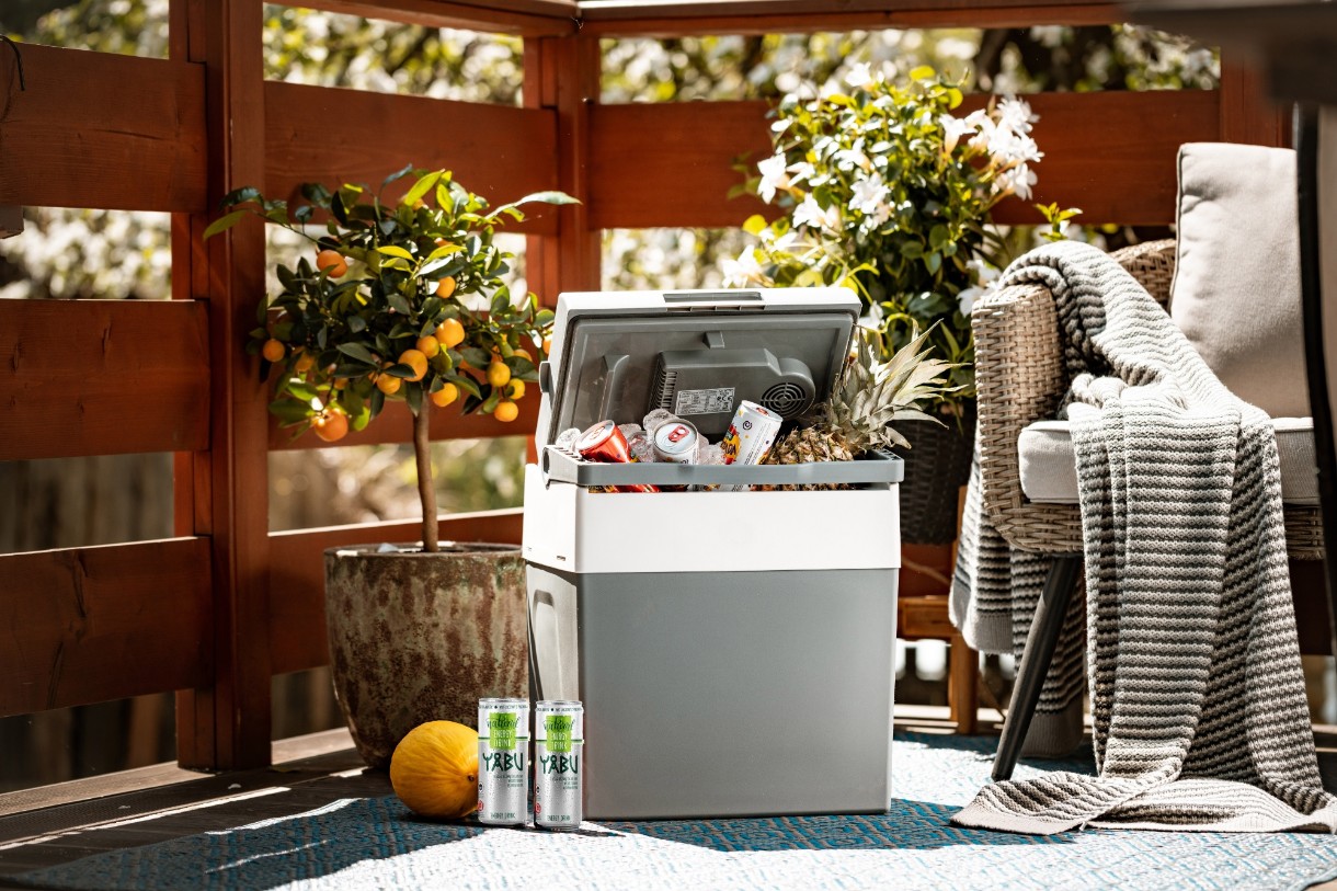 Создан для путешественников, которые ценят охлаждающие напитки даже во время кемпинга. Большое холодильное отделение вмещает до 28 литров. Холодильник закрывается удобными защелками. Благодаря специальной теплоизоляции корпуса он может поддерживать температуру в холодильной камере. Пользователь может подключить его как к сети 230 В (для мощности охлаждения 55 Вт), так и к автомобильному прикуривателю 12 В (мощность 45 Вт). Для удобства использования установлена ручка, которую можно спрятать в крышке холодильника. После закрытия холодильник превращается в удобный чемодан, как эстетичный, так и удобный для переноски.