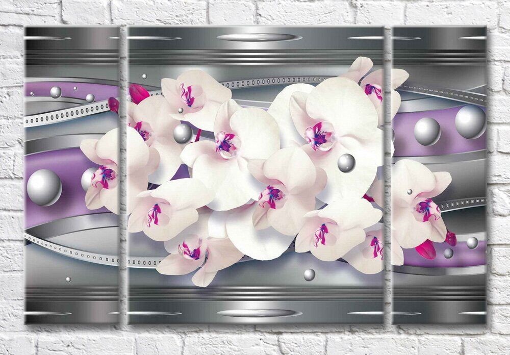 Картина Magic Color Orchids and spheres on a Gray background with Purple stripes (3565166)