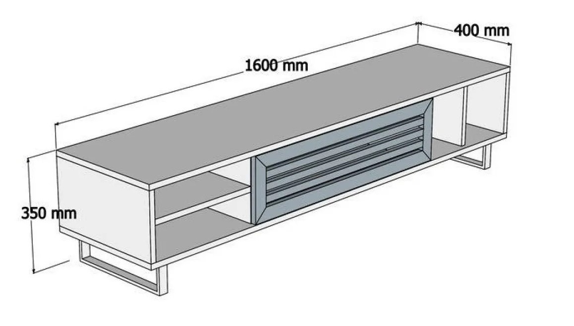 Размеры 160 см в ширину, 35 см в высоту и 40 см в глубину обеспечивают достаточно места для телевизора, игровых консолей, аудиосистемы и других аксессуаров. Открытые полки и вместительные шкафы предлагают удобные варианты хранения, поддерживая порядок и аккуратность в гостиной.