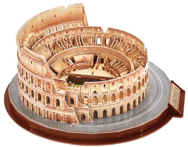 Вместе собирая 3D пазл со своими детьми, вы можете им рассказать о том что Колизей смело можно назвать «двойным амфитеатром», так как он представляет собой два полукольца, соединенные в виде овала. Длина наружного эллипса Колизея составляет 524 метра, длина большой оси – 188 метров, малая ось – 155,6 метров. Длина арены Колизея оставляет 85,75 метров, а ширина – 53,62 метра