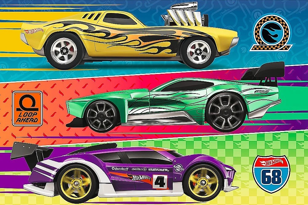 Пазлы на 60 элементов с изображением трех гоночных коллекционных машинок популярного бренда Hot Wheels от известного американского производителя Mattel.