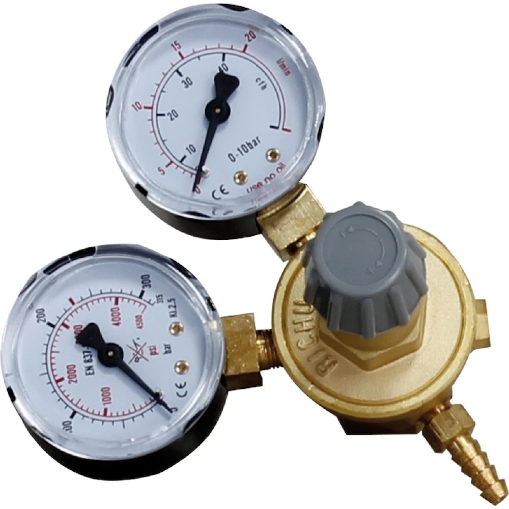 Awelco Micro-Max (Артикул: 92420) — это компактный газовый редуктор (регулятор давления) с двумя манометрами, предназначенный для использования в сварочных системах CO₂.