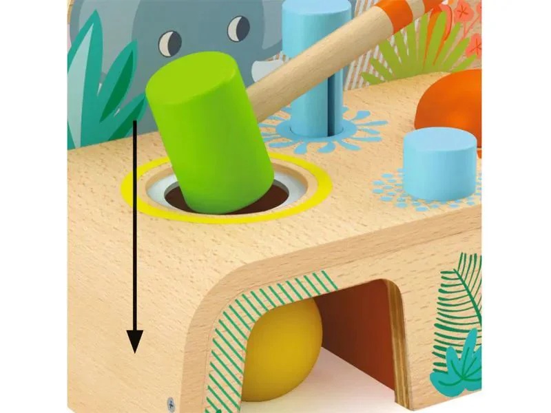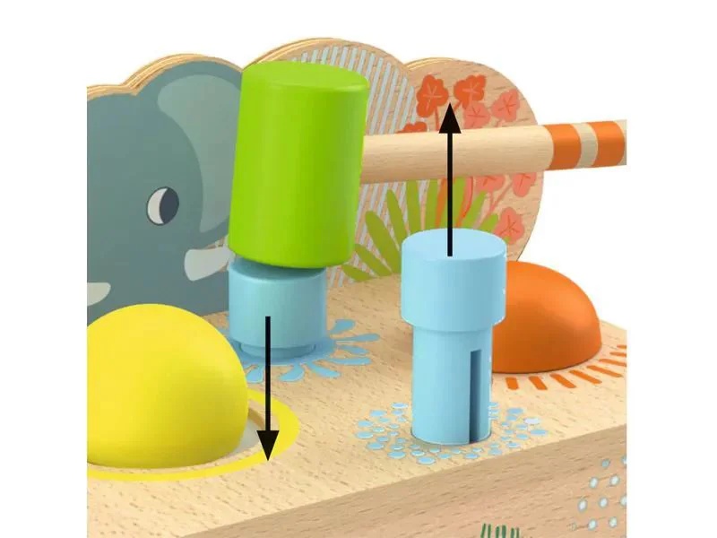 Multi-Tap от Djeco — это весёлая и развивающая деревянная игрушка, идеально подходящая для детей от 18 месяцев. С помощью деревянного молоточка малыши откроют для себя 3 разных и забавных способа ударять и взаимодействовать с элементами — каждая реакция вызывает смех и пробуждает любопытство.