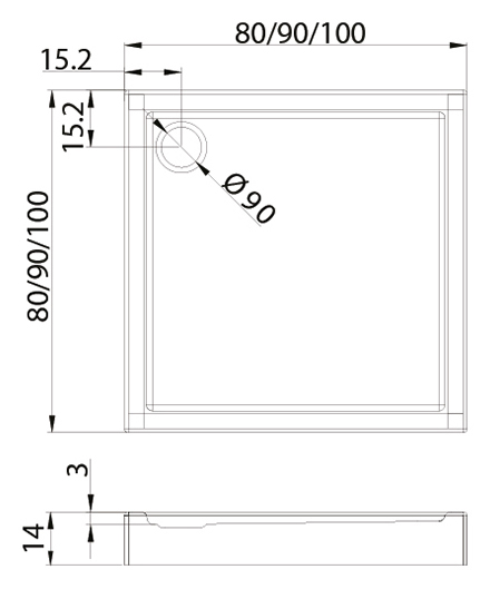 Душевой поддон New Trendy B-0107 Columbus 90x90x14 (00641) фото №2 — интернет-магазин Desire.md