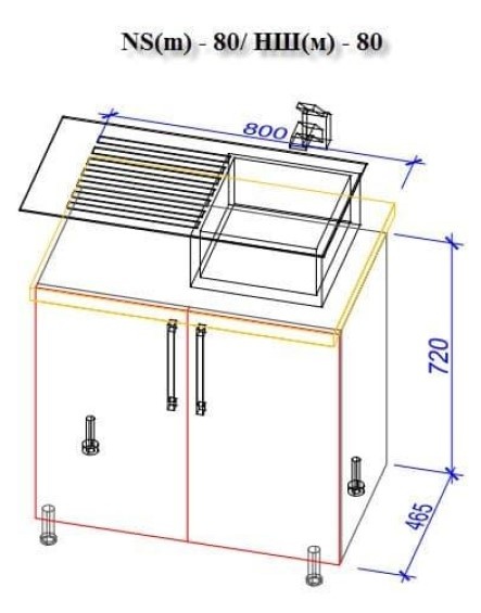— Шкаф нижний НШ(м)-80(под мойку) (1шт.): 80×46.5×72 см
