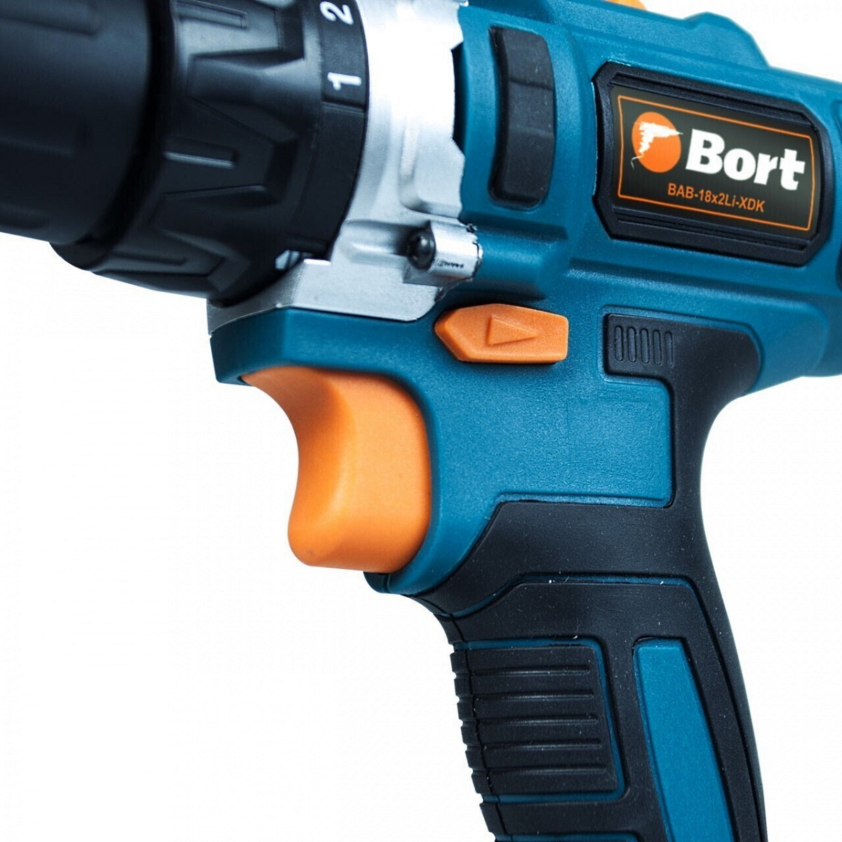 Дрель-шуруповерт Bort BAB-18×2Li-XDK характеризуется высоким крутящим моментом: он может достигать 36 Н/м. Имеются 12 ступеней регулировки крутящего момента. Модель имеет патрон быстрозажимного типа. Важным преимуществом инструмента является наличие подсветки рабочей зоны. Электронная защита от перегрузок способствует продлению ресурса устройства. Модель упакована в удобную сумку.