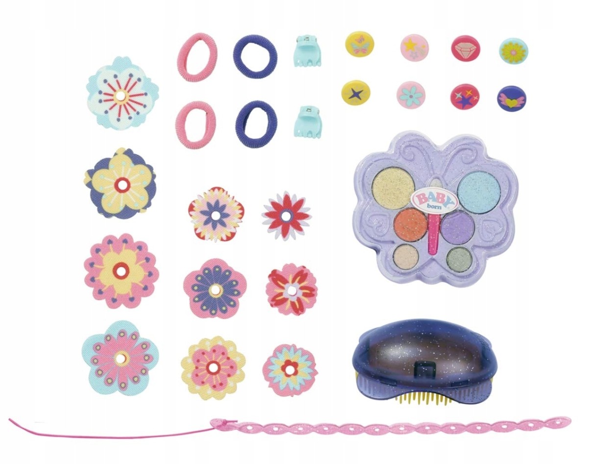 BABYborn Styling Head с 24 аксессуарами для макияжа, укладки и парикмахерского искусства.
