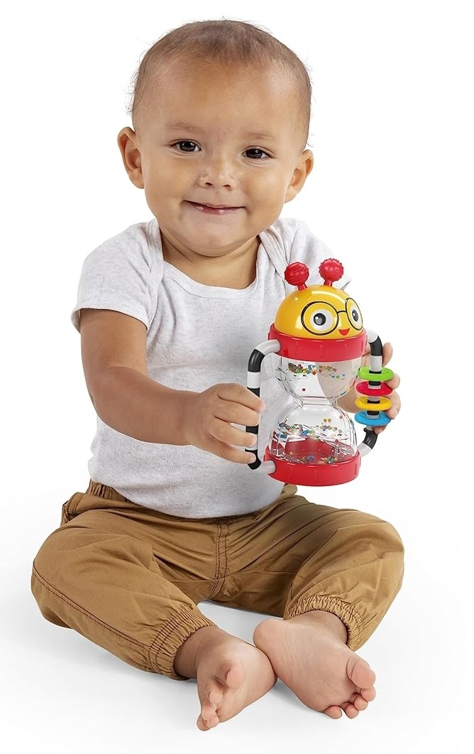 Погремушка-встряска Baby Einstein Cal's Sensory Shake-up Activity Rattle — это многосенсорная игрушка, разработанная для вовлечения ребенка в сенсорную игру и поощрения этапов развития. 5 сенсорных функций позволяют ребенку исследовать новые текстуры, развивать мелкую моторику и стимулировать причинно-следственное обучение с помощью этой игрушки без BPA. Ребенку понравится исследовать текстуру усиков Cal или создавать шум, встряхивая песочные часы, чтобы получить звуки погремушки. Для обнаружения причинно-следственных связей младенцы могут поворачивать голову Cal, чтобы издать щелчок, или использовать безопасное для ребенка зеркало на основании игрушки, чтобы способствовать самопознанию и радости. 4 кольца-погремушки стимулируют мелкую моторику или помогают родителям обучать малышей изучению цветов. Высококонтрастные цвета стимулируют визуальное развитие ребенка, а две удобные для захвата ручки делают эту игрушку без батареек идеальным способом занять ребенка на ходу.