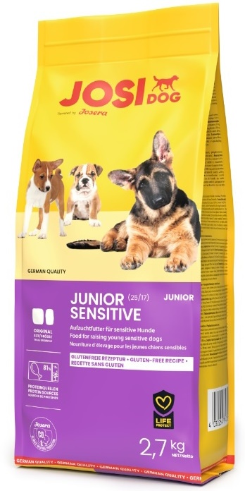 JOSERA JosiDog Junior Sensitive благодаря сбалансированному соотношению кальция и фосфора, подходит для чувствительных собак с 8-й недели жизни. Рецептура, не содержит глютена, способствует умеренному росту и прочной структуре костей.