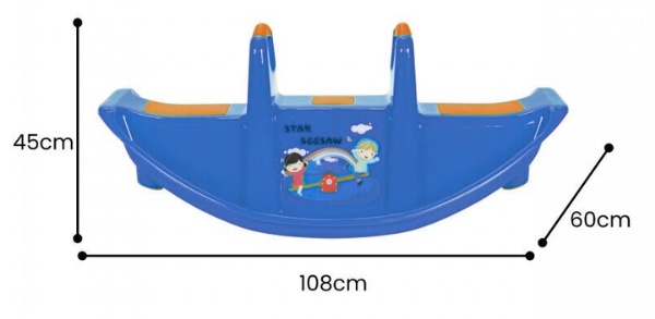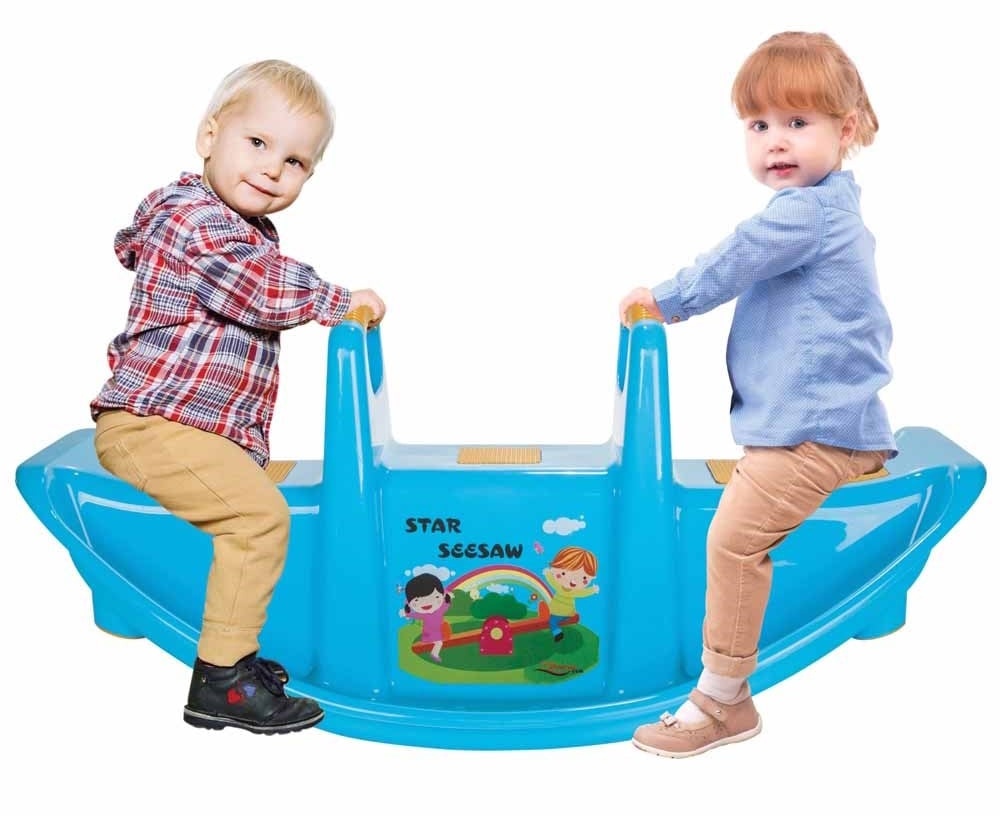 Star Seesaw – напольная детские двухместные качели, предназначенные для малышей от 3 лет. Они имеют цельную конструкцию, эргономичный дизайн, защиту от опрокидывания (ограничители по краям) и ручки для держания. Изделие может использоваться как внутри помещения, так и на улице.