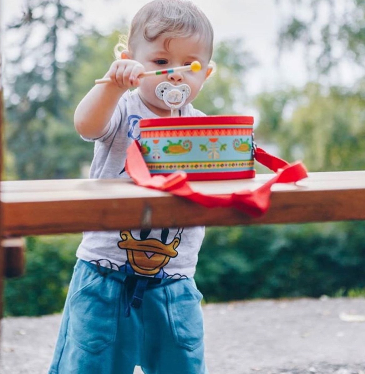 Этот яркий и симпатичный барабан станет замечательным подарком для любого ребенка (рекомендуемое возрастное ограничение составляет три годика и старше). Следует отметить, что и барабан, и две барабанные палочки изготовлены из дерева, а потому инструменты очень легкие по весу, и их удобно держать в руках. Для обеспечения дополнительного комфорта во время игры на барабане имеется регулируемый ремешок, позволяющий вешать инструмент на шею. Обучение музыке в раннем возрасте благотворно влияет на психоэмоциональное состояние детей, а также развивает их слух и чувство ритма.