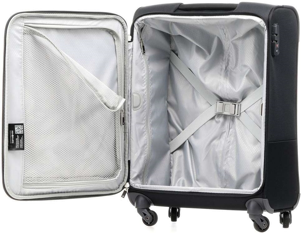 — Внутренняя организация привычная для Samsonite, — это упругие перекрестные ремни в основном отделении, длинный карман на молнии и отделение для глаженых вещей на крышке, закрываемое сетчатой перегородкой на молнии.