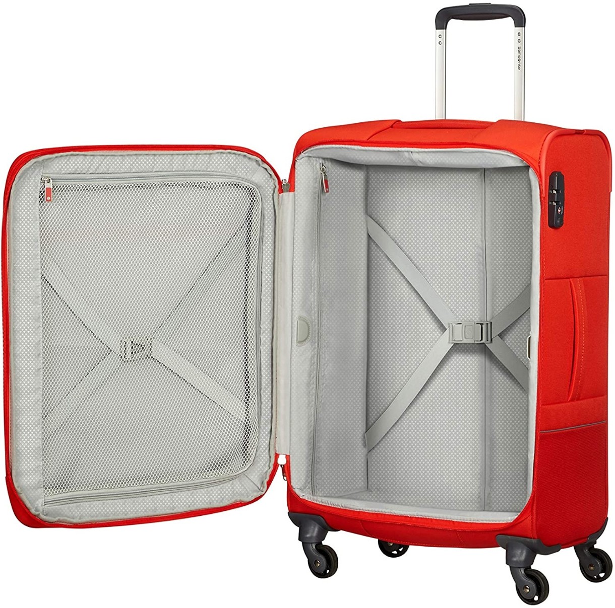 — Внутренняя организация привычная для Samsonite, — это упругие перекрестные ремни в основном отделении, длинный карман на молнии и отделение для глаженых вещей на крышке, закрываемое сетчатой перегородкой на молнии.