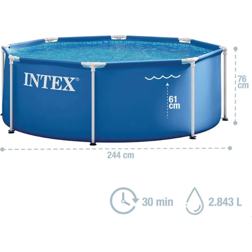 Идеальный для сада или двора, этот бассейн станет отличным местом для отдыха, развлечений и охлаждения в жаркие летние дни. С Intex Metal Frame Blue ваши летние моменты будут комфортными и безопасными.