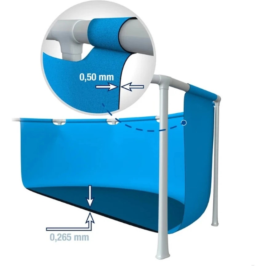 Бассейн оснащен устойчивой металлической рамой, которая обеспечивает надежную поддержку и долгий срок службы. Простая сборка позволяет быстро подготовить бассейн к использованию, а просторная чаша обеспечивает достаточно места для игр и купания.