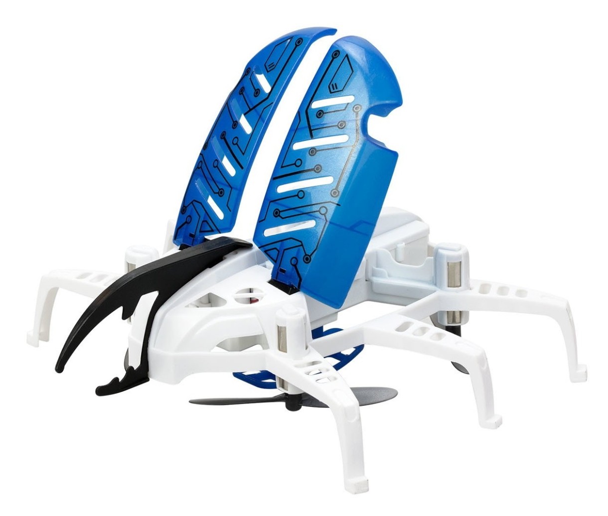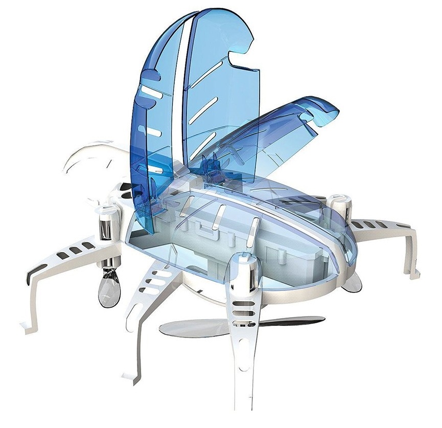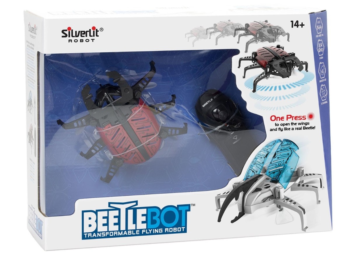 Трансформируется как робот, ходит как жук, летает как дрон. Одним нажатием распахивает крылья и взлетает. Ходит как жук по полу. Оснащен технологией автоматического взлета Оснащен датчиком давления, который фиксирует высоту. Время зарядки около 50 мин. Время игры около 4 мин.