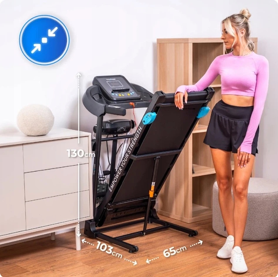 Благодаря мощному и тихому мотору дорожка работает плавно и стабильно даже на высоких скоростях. Это позволяет выполнять как лёгкие прогулки, так и интенсивные беговые тренировки, направленные на развитие выносливости и улучшение физической формы.