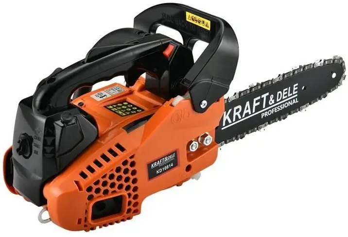 Бензопила Kraft&Dele KD10614 — это компактная и легкая бытовая модель весом всего 4,2 кг, созданная для периодического использования на приусадебном участке. Она оснащена шиной длиной 10 дюймов (25 см), что делает её удобной для обрезки сучьев, распила небольших бревен и заготовки дров. Двигатель объёмом 52 см³ отличается экономичностью, а небольшие топливный бак на 0,23 л и масляный на 0,21 л обеспечивают низкий расход смеси и масла. Простая конструкция без сложной электроники делает пилу ремонтопригодной и удобной в обслуживании: пользователь легко сможет прочистить карбюратор или заменить свечу. Антивибрационная система на резиновых демпферах снижает утомляемость, а инерционный тормоз цепи и блокировка случайного нажатия газа обеспечивают базовый уровень безопасности. Модель неприхотлива к качеству топлива и отлично подходит тем, кому нужен лёгкий, недорогой и простой в обращении инструмент для садовых и хозяйственных задач.