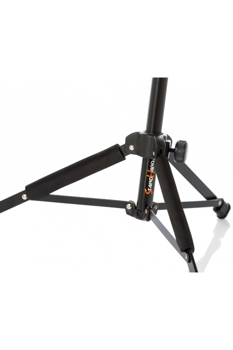 Универсальная стойка для скрипки, регулируемая по высоте. Все части стойки, прилегающие к скрипке, покрыты специальным мягким материалом EVA, обеспечивающим полную безопасность инструмента. Стойка оборудована крючком для смычка.