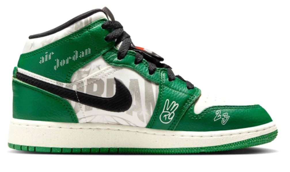 Ботинки детские Nike Air Jordan 1 Mid Se Uni2 Bg Pine Green|sail/Black/Team Orange, s.38 фото №1 — интернет-магазин Desire.md
