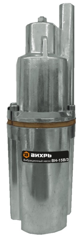 Погружной насос Вихрь ВН-15В снабжён 15-метровым сетевым кабелем и оснащён надёжным износостойким двигателем вибрационного типа мощностью 280 Вт, который предельно прост в эксплуатации и не нуждается в каком-либо техническом обслуживании. Вихрь ВН-15В предназначен для подъёма чистой пресной воды из скважин диаметром более 100 мм, для подачи воды из колодцев, открытых водоёмов и различных резервуаров. Может применяться в системах полива, орошения и индивидуального водоснабжения. Насос развивает производительность до 1080 л/ч и создаёт напор до 72 м. Верхний водозабор уменьшает вероятность засасывания ила и мусора со дна, препятствуя засорению насоса.