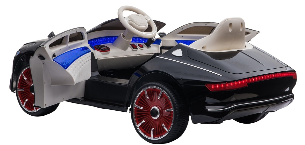 Он может поворачиваться в разные стороны, двигаться вперед и назад. Для максимального комфорта маленького водителя продумано удобное кожаное сиденье. В машине есть разъем MP3, музыка и свет. Чтобы поездка была максимально комфортной, автомобиль оснащен амортизаторами.