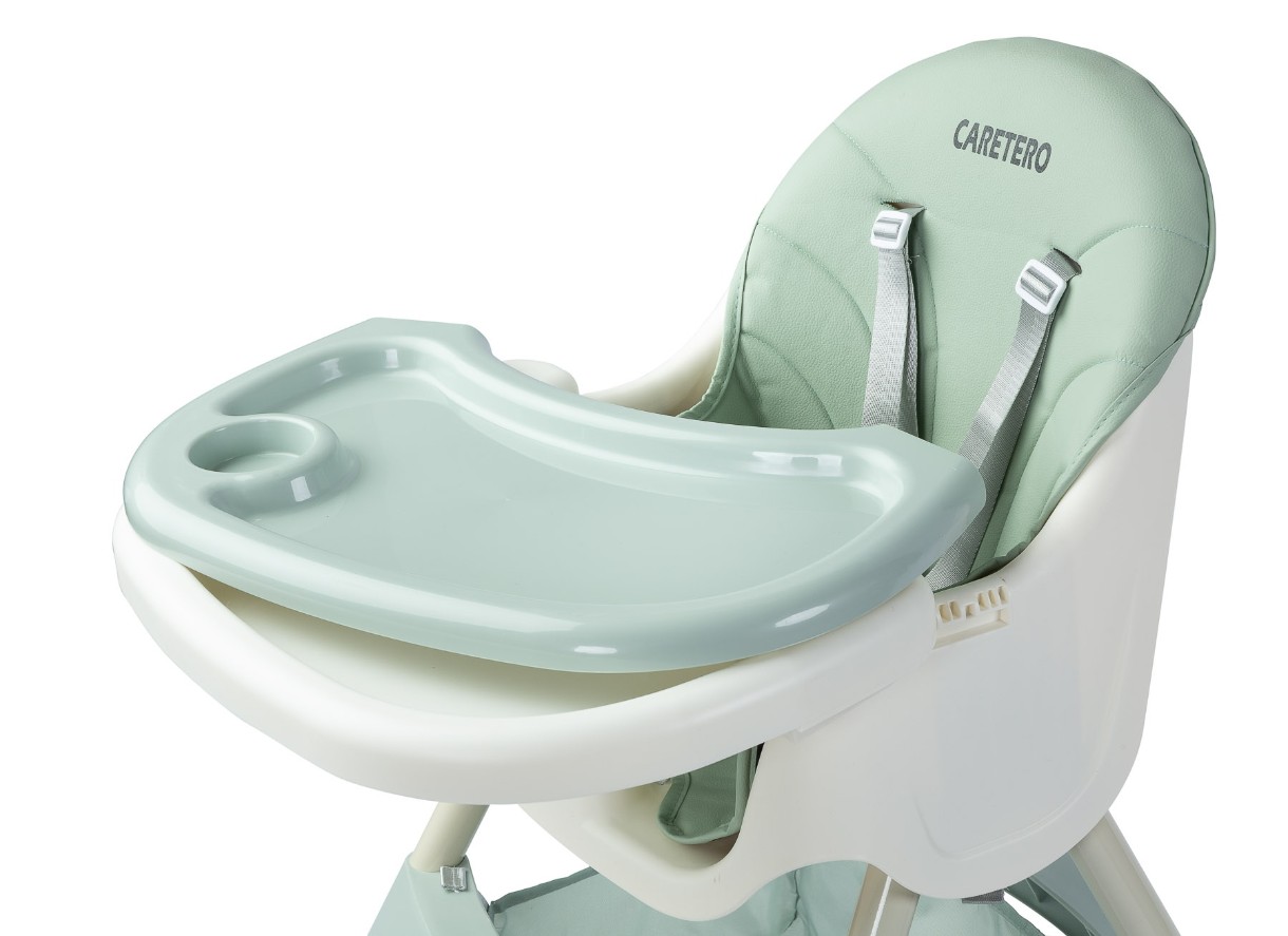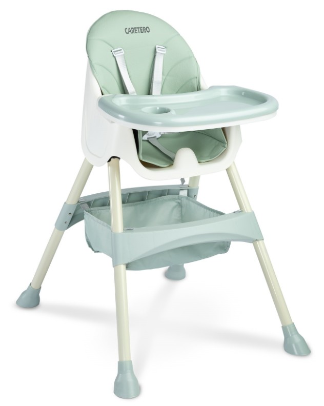 Caretero Bill - это легкий и не дорогой стульчик для кормления 2 в 1. Он имеет все функции, которые облегчают ежедневное кормление: регулируемый двойной столик, 5-точечные ремни, съемная обивка из экокожи, подставка для ног, тканевый корзину, ножки с антискользящим покрытием . Стул можно легко заменить низким креслом, разобрав нижнюю часть ножек.