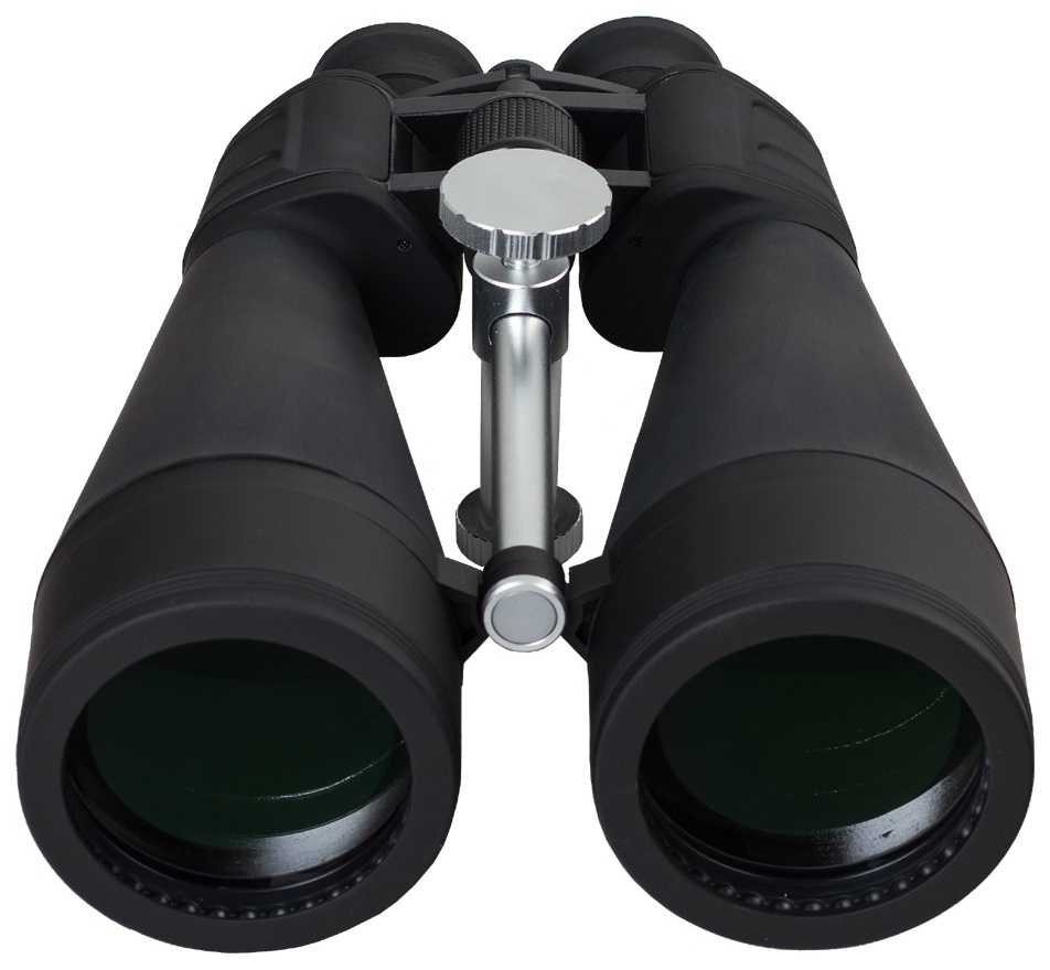 Bresser Astro 20×80 — мощная модель бинокля с большой апертурой объективов. Объективы в 80 мм позволяют собрать значительное количество света, что благоприятно сказывается на качестве изображения в темное время суток. Более того, большие объективы совместно с 20-кратным увеличением делают эту модель пригодной для астронаблюдений. Конечно, такое высокое увеличение не позволяет использовать прибор «с рук» (из-за заметного дрожания изображения), но такая проблема решается крайне просто — бинокль легко устанавливается на штатив при помощи специального адаптера (штатив и адаптер уже входят в комплект).