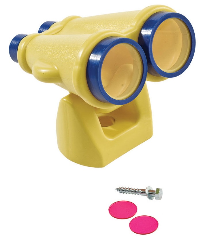 Имеет пару малых желтых и пару больших прозрачных линз. В комплекте пара запасных малых розовых линз. В наличии соединительный элемент и набор крепежей. Вращается во всех направлениях. Не приближает.