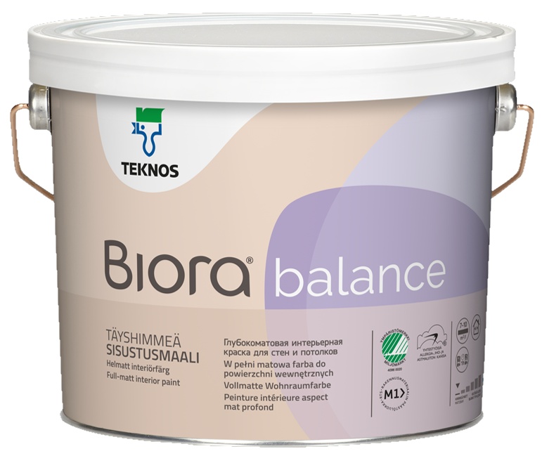 Тип: Водоразбавляемая глубокоматовая краска для внутренних работ, хорошо маскирующая неровности и дефекты окрашиваемой поверхности. Экологически чистая, не содержит растворителей, относится к высшей категории экологической безопасности — М1, не вызывает аллергических реакций. БИОРА БАЛАНС выдерживает более 10000 проходов щеткой и мытьё с применением моющих средств.