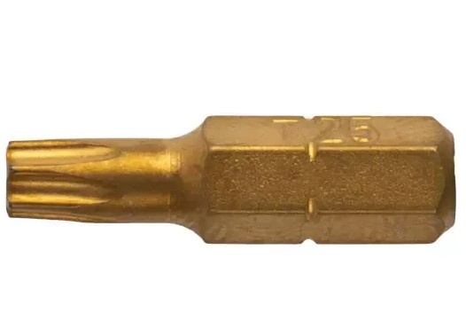 1. Повышенная износостойкость: Покрытие из нитрида титана увеличивает устойчивость биты к истиранию и продлевает её срок службы.