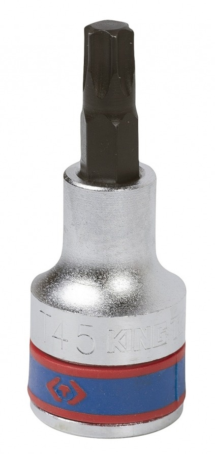 Насадка (бита) торцевая KING TONY 1/2", Torx, L = 60 мм предназначена для работы с крепежом, имеющим профиль Torx (звездообразный). Используется с ручными или ударными инструментами в автосервисах, СТО или для продвинутого домашнего ремонта автомобилей, техники и оборудования. Бита запрессована в торцевую головку с квадратом 1/2", изготовлена из прочной инструментальной стали S2 и хром-ванадия (Cr-V) с хромированным покрытием, соответствует стандарту DIN 3120. Не предназначена для работы с пневматическими гайковертами.