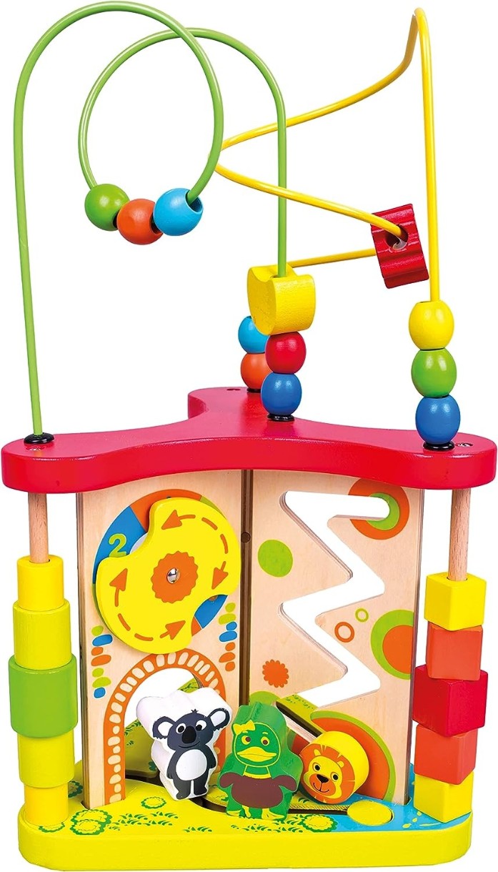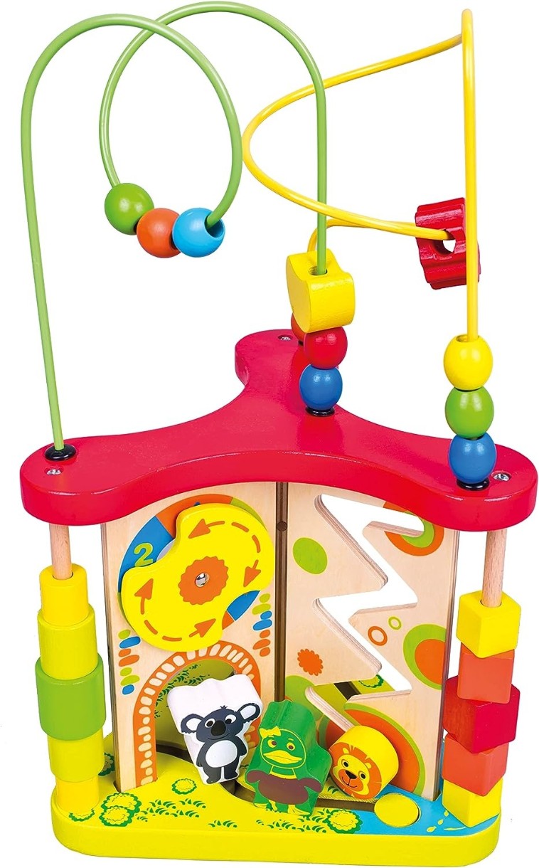 Благодаря изысканному дизайну и функции игрушки дети учатся распознавать основные цвета, формы, цифры, предметы. Проводя разноцветные бусинки по сложному вертикальному лабиринту из толстой проволоки, ребенок тренирует внимание, усидчивость, мелкую моторику рук и координацию движений.