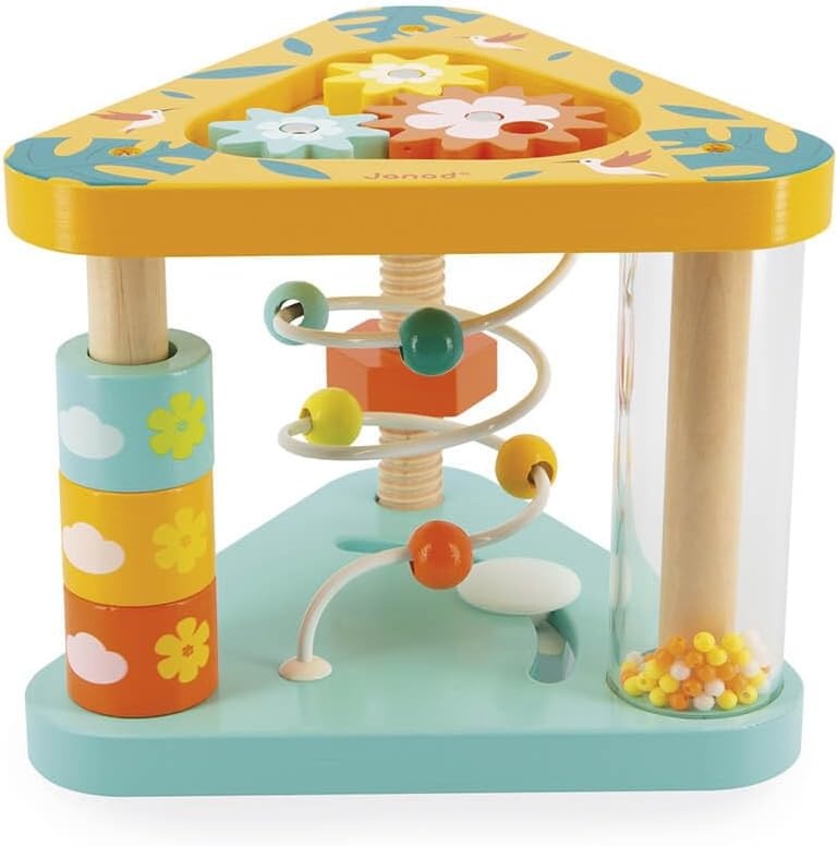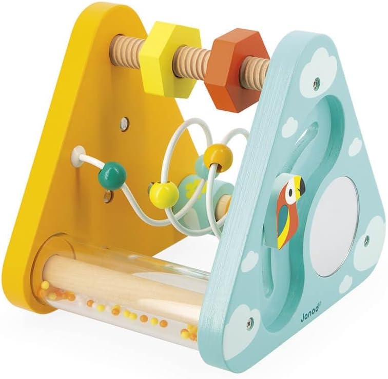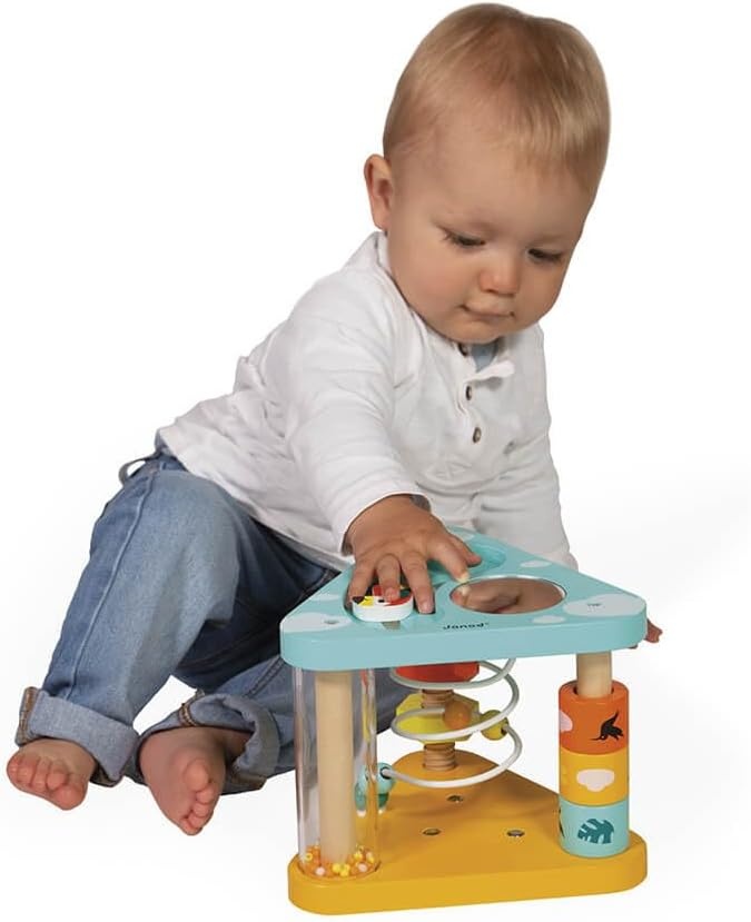 Этот яркий треугольник активности перенесет вас в тропическое приключение! В этот двусторонний набор входят 7 заданий: лабиринт, зеркало, набор шестеренок, гаек и болтов, дождевая палка и цилиндры для выравнивания. Это отличный помощник в раннем обучении для любого ребенка. Этот треугольник стимулирует слух, концентрацию и мелкую моторику. Игрушка раннего возраста для детей от 12 месяцев. Чтобы создать эту серию, мы отправились в тропики в поисках эскапистской, экзотической и контрастной атмосферы. Чтобы лучше всего проиллюстрировать эту дикую природу, мы объединили веселых животных ярких цветов и растительные элементы спокойных оттенков.