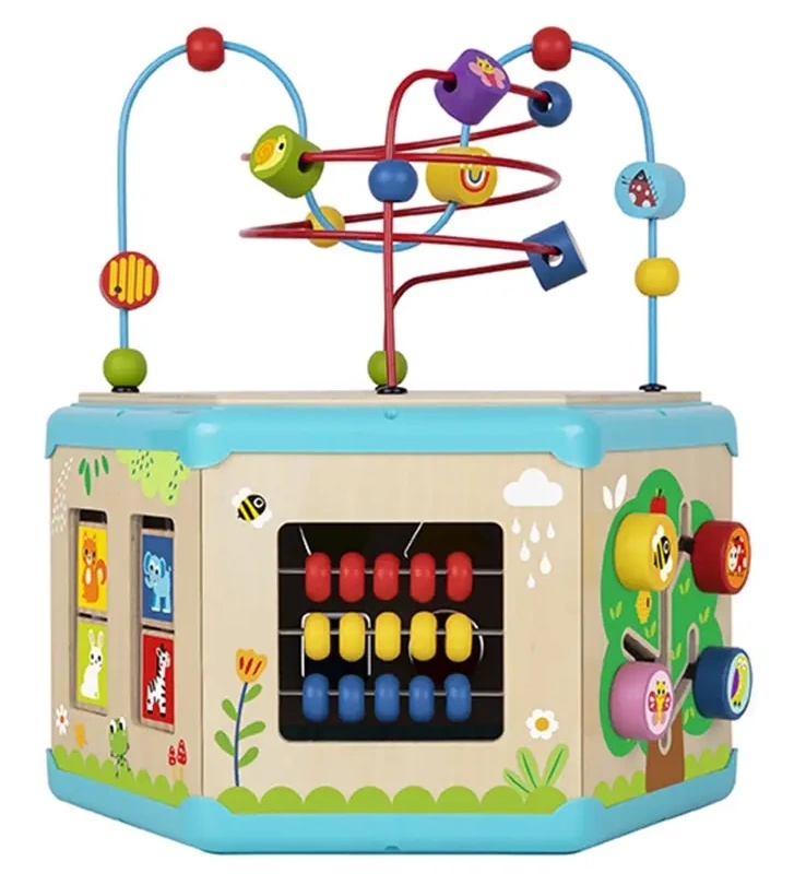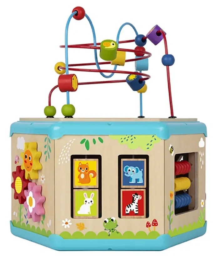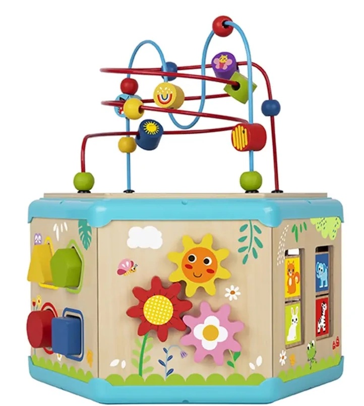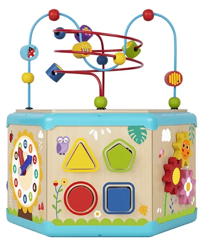 Удивительная развивающая деревянная игрушка от Tooky Toy 7 в 1 по методике Монтессори. Каждая сторона куба представляет уникальные возможности. Проволочный лабиринт с фигурками животных и бусинами разных цветов и форм. Этот съемный 3D-лабиринт может использоваться отдельно и легко хранится в самой коробке. Веселые красочные часы. Лабиринт с птицами и насекомыми. Механизм с шестеренками. Крутящиеся карточки с цифрами и ассоциациями. Сортер с 4 фигурами. Разноцветные счеты. Этот разноцветный бизикуб очарует всех детей. Подобные игры способствуют развитию мелкой моторики и зрительно-моторной координации. Обучают малыша формам и цветам, развивают логику, пространственное восприятие, навыки решения проблем и дают ощущение собственных успехов и достижений. Игрушка изготовлена из высококачественных материалов, покрыта нетоксичной краской на водной основе и совершенно безопасна для малышей.