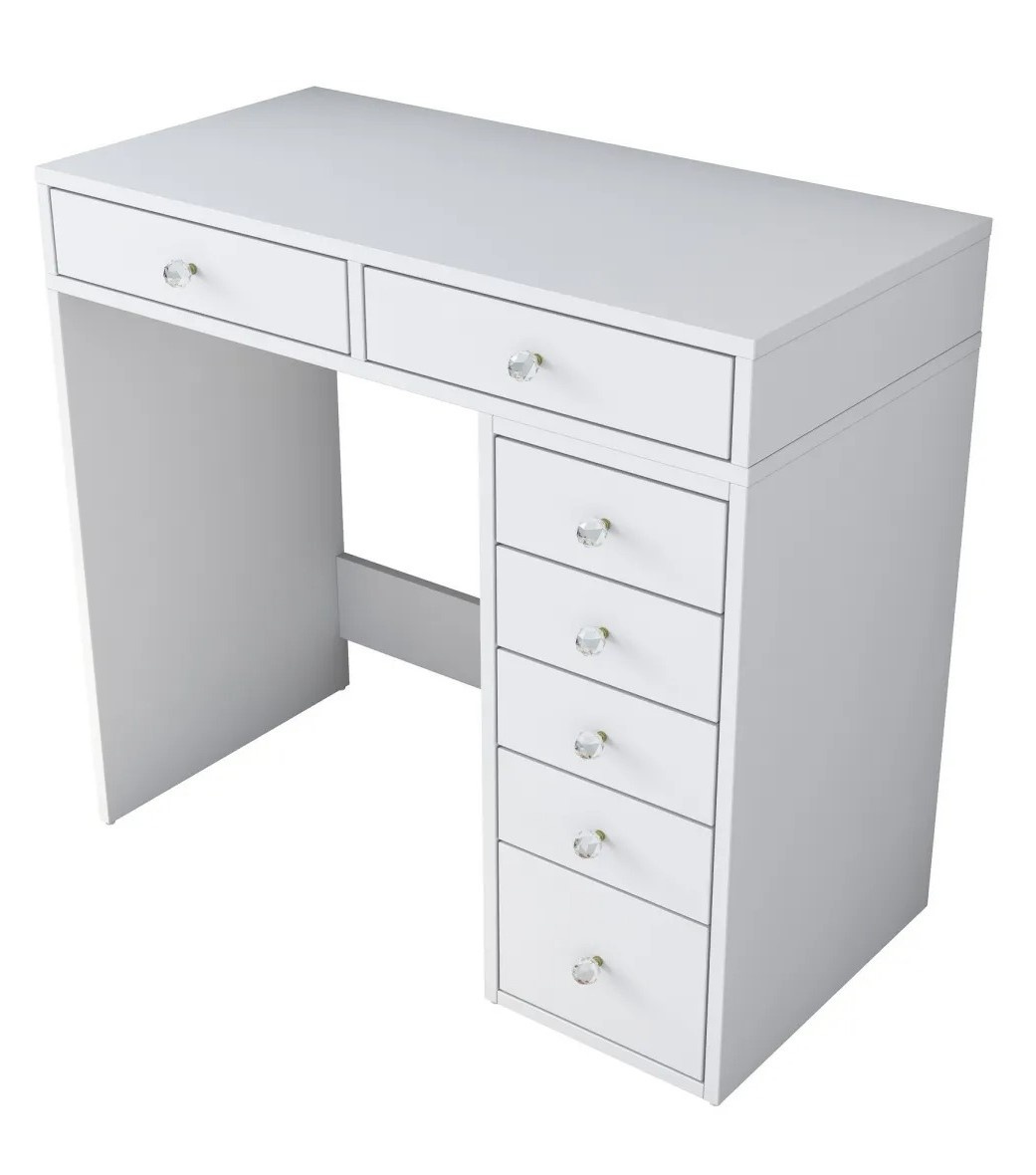Просторная поверхность столика предоставляет достаточно места для косметики, кистей и аксессуаров, помогая держать всё в порядке и под рукой. Гладкое меламиновое покрытие добавляет изысканности и обеспечивает долговечность, чтобы изделие служило вам много лет.