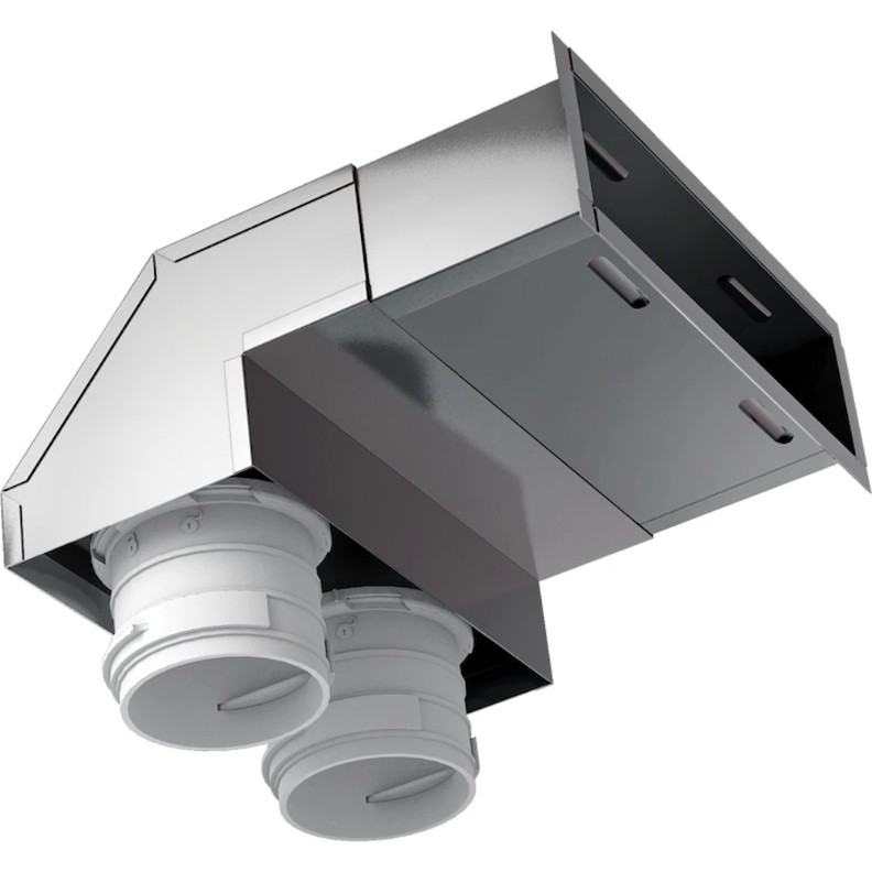 Blauberg BlauFast RPWB 200x55/75x2 M — это настенный угловой металлический пленум (адаптер), предназначенный для распределения воздуха в системах приточной или вытяжной вентиляции жилых помещений. Он служит связующим звеном между двумя полужесткими воздуховодами диаметром 75 мм и настенной вентиляционной решеткой размером 200x55 мм.