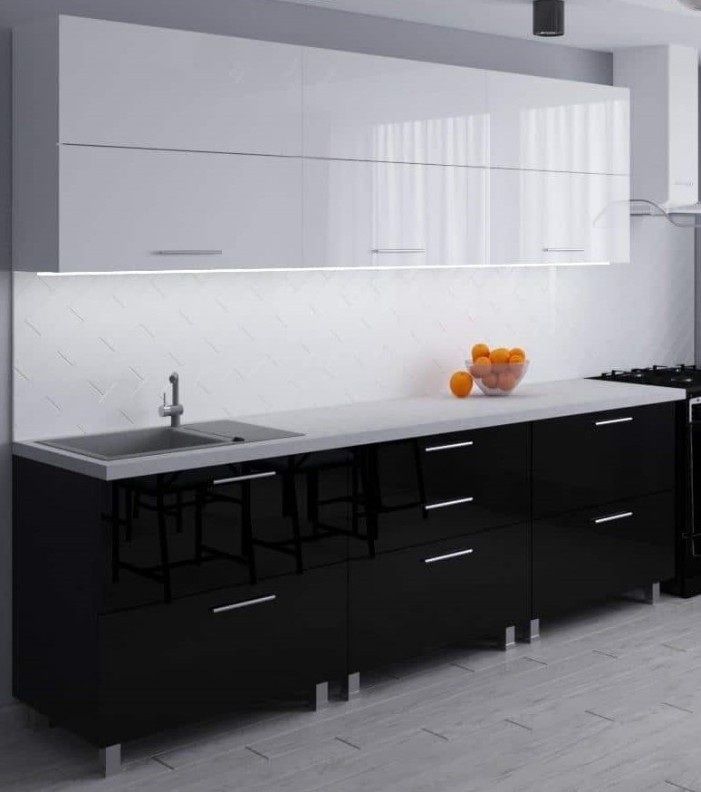 Кухонный гарнитур Bafimob Blum (High Gloss) 2.4m White/Black