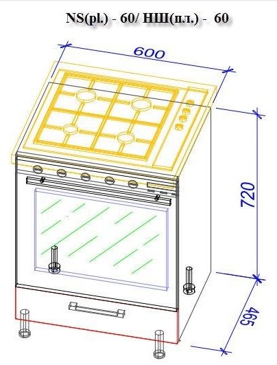 — Нижний кухонный шкаф NS(pl)-60/НШ(пл)-60 (1шт.): 60×48.5/60×72 см