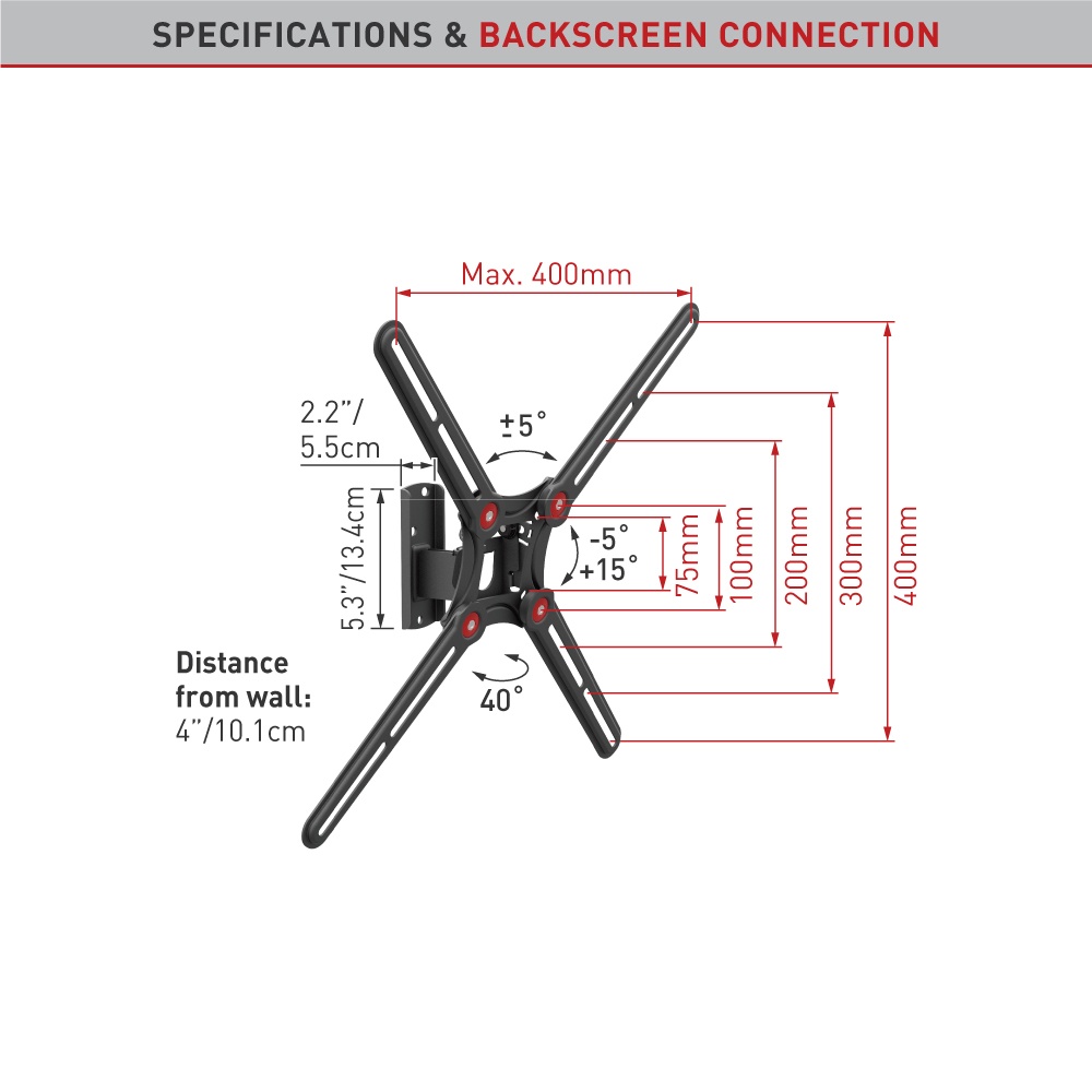 Стандарт VESA75x75, 100x100, 100x200, 200x100, 200x200, 300x300, 300x400, 400x200, 400x300, 400x400 мм