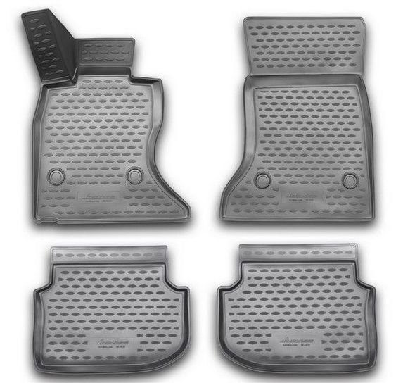 Коврики в салон для BMW 5 (F10) 2010-2013 изготовлены из экологически чистого полимерного материала.Представленные коврики пластичны, не боятся химически активных веществ. Одним из плюсов является фиксация ковриков специальными крепежами. Производитель гарантирует, что во время движения автомобиля коврики не сдвинутся с места. Конструкция ковриков исключает блокирование педали тормоза, акселератора или сцепления. Нужно отметить, что передние коврики имеют специальный язычок, который закрывает площадку отдыха левой ноги, а задние коврики соединены между собой перемычкой.