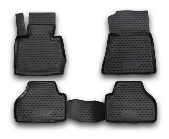 Коврики в салон для BMW X3 2010-2014 изготовлены из экологически чистого полимерного материала. Представленные коврики пластичны, не боятся химически активных веществ. Одним из плюсов является фиксация ковриков специальными крепежами. Производитель гарантирует, что во время движения автомобиля коврики не сдвинутся с места. Конструкция ковриков исключает блокирование педали тормоза, акселератора или сцепления. Нужно отметить, что передние коврики имеют специальный язычок, который закрывает площадку отдыха левой ноги, а задние коврики соединены между собой перемычкой.