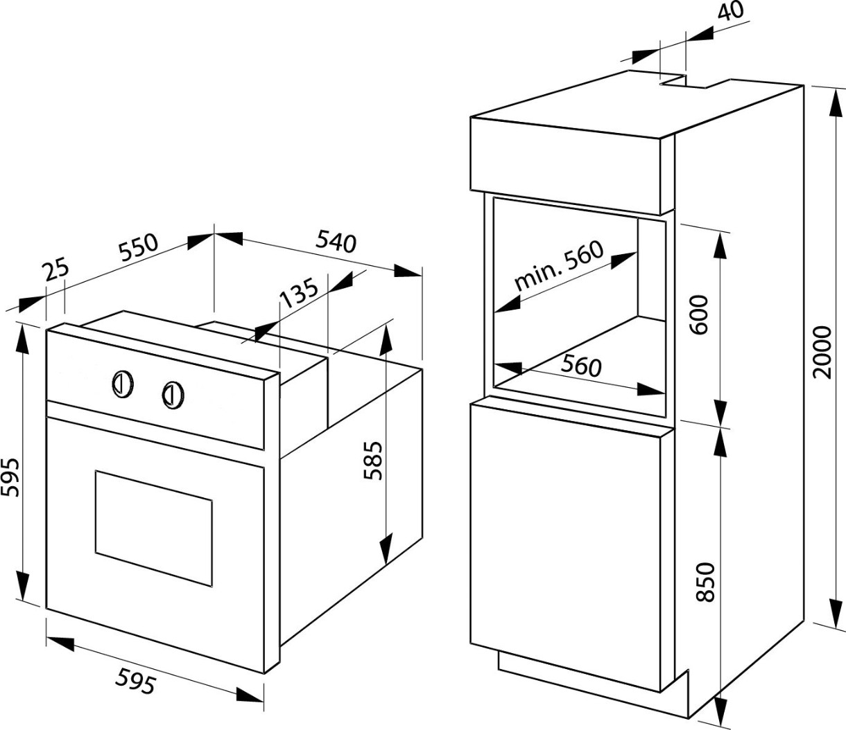 Размеры ниши для встраивания (ВхШхГ)59.5x56x56 см
